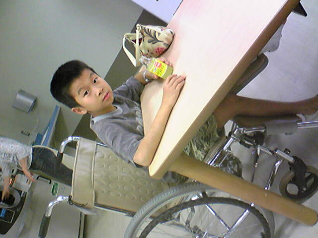 事故後、二週間くらい経過した状態です。いつも広域で見てるように院内を動きまわってました(笑)お母さんとのミニコントがGood♪でした(^^)/お見舞いに行ったつもりが、逆に接待されたような感じでした♪♪♪ありがとう