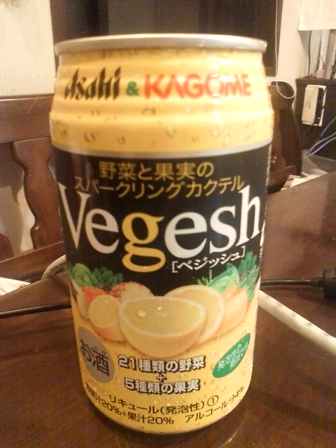 これも、お気に入りうまいよ。野菜と果実のスパークリングカクテル野菜20%+果汁20% で 微発泡発泡版は ベジッシュ