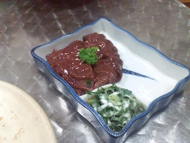 昼からレバ刺〜〜 うま〜い週末に備え、エナジー充填じゃ ・・・