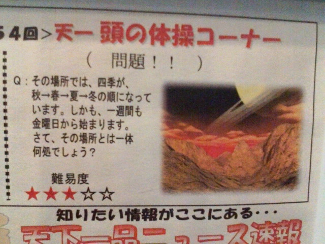 わ〜かった♪ちなみに先月の問題はおなかデカい終わるとおまじないを唱えると出てくる・・・