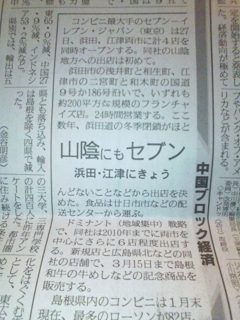 へ〜 なかったんじゃたしかにポプラとローソンしかみんなあ浜田と江津に今日4つオー・・・