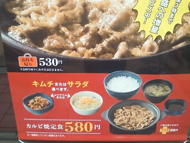 カルビ焼き定食 580円うまげあしたはこれにしようあサラダはキムチに交換可能・・・