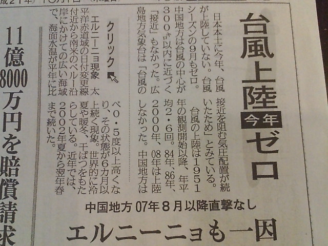台風上陸ゼロ