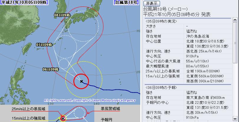 エーローみたいな名前の18号なんですか・・・瞬間最大風速80m/s っつゅうのは・・・
