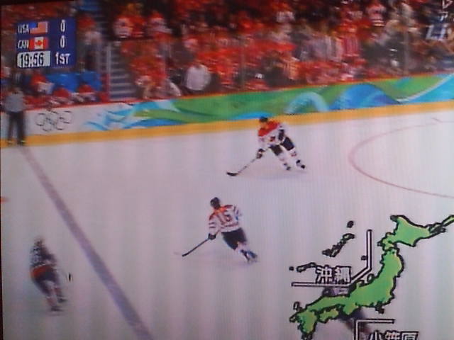 さあ いよいよアイスホッケー決勝はじまり〜カナダ対アメリカ津波注意報消えて〜・・・