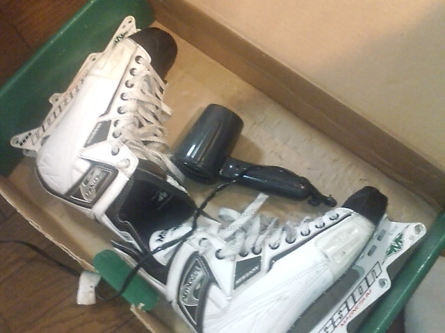 スケートの入ってたハコにこんな感じで、スケート、ドライヤーを詰め合わせます。