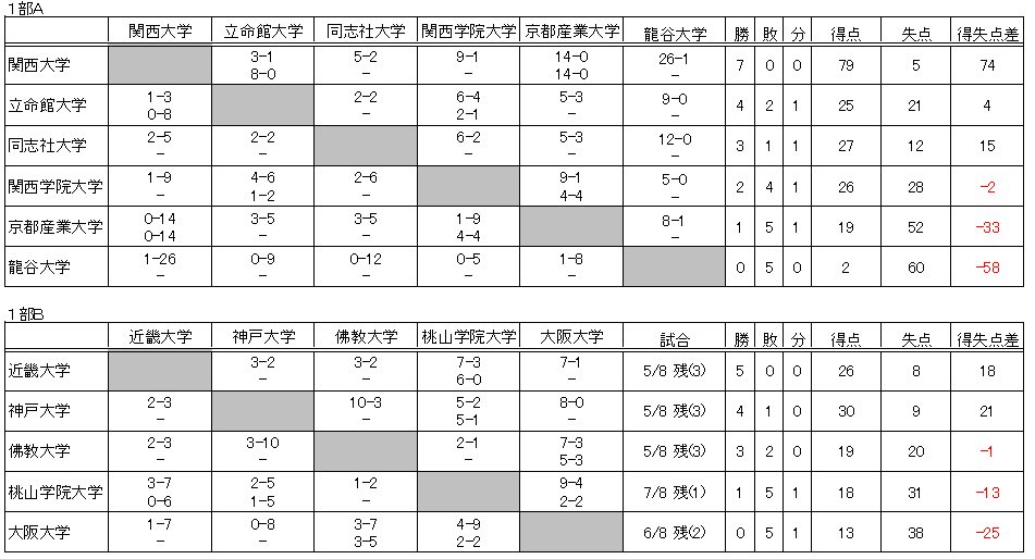 1部-Aは、関大圧勝、2位争いは白熱しています。