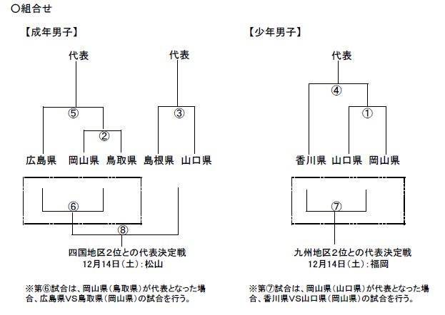 ※第⑥試合は、岡山県(鳥取県)が代表となった場合、広島県VS鳥取県(岡山県)の試合を行う。