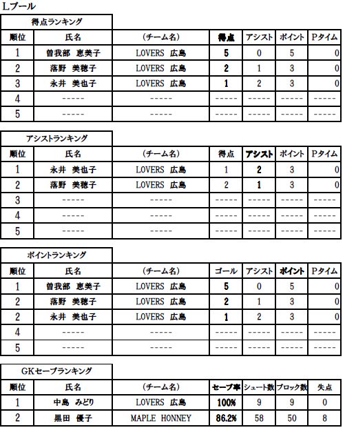Lプール優勝のLOVERS広島