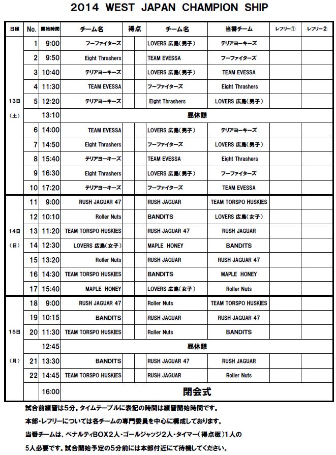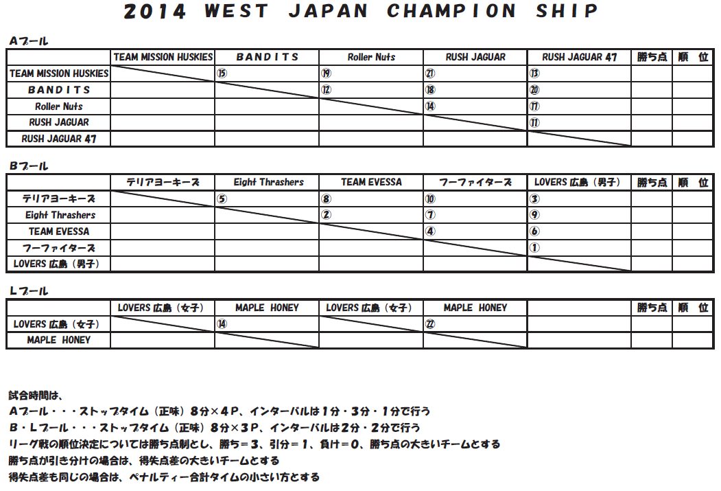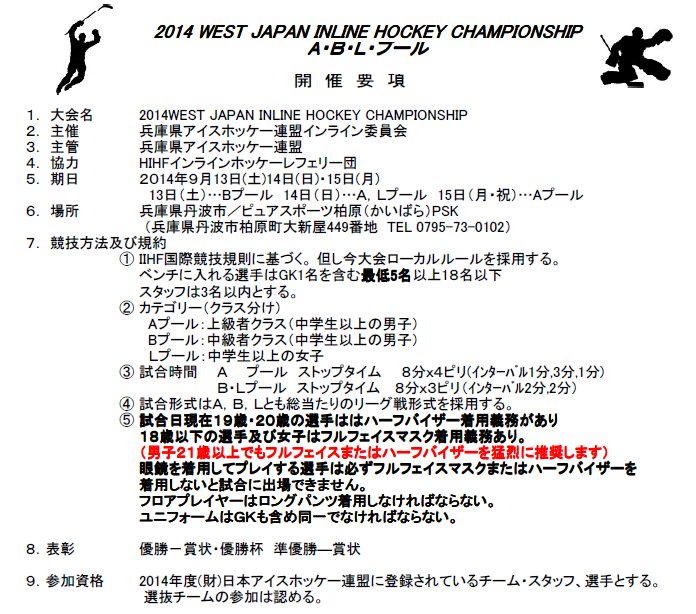 2014 WEST JAPAN INLINE HOCKEY CHAMPIONSHIP 詳細