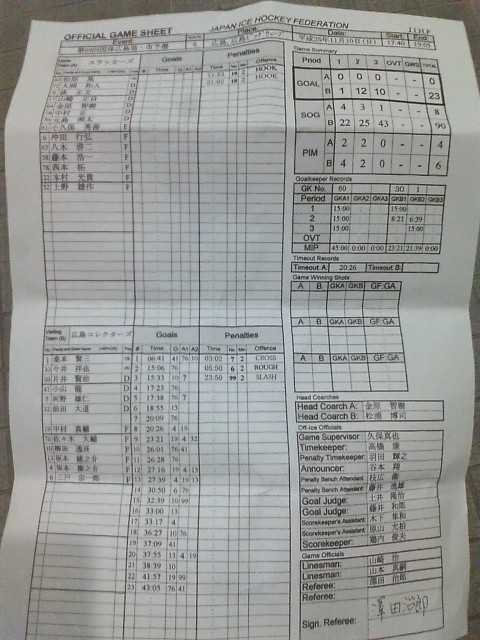 11月10日 広島ビッグウェーブにて、アイスホッケー第69回国体広島県・市予選大会が行いました。