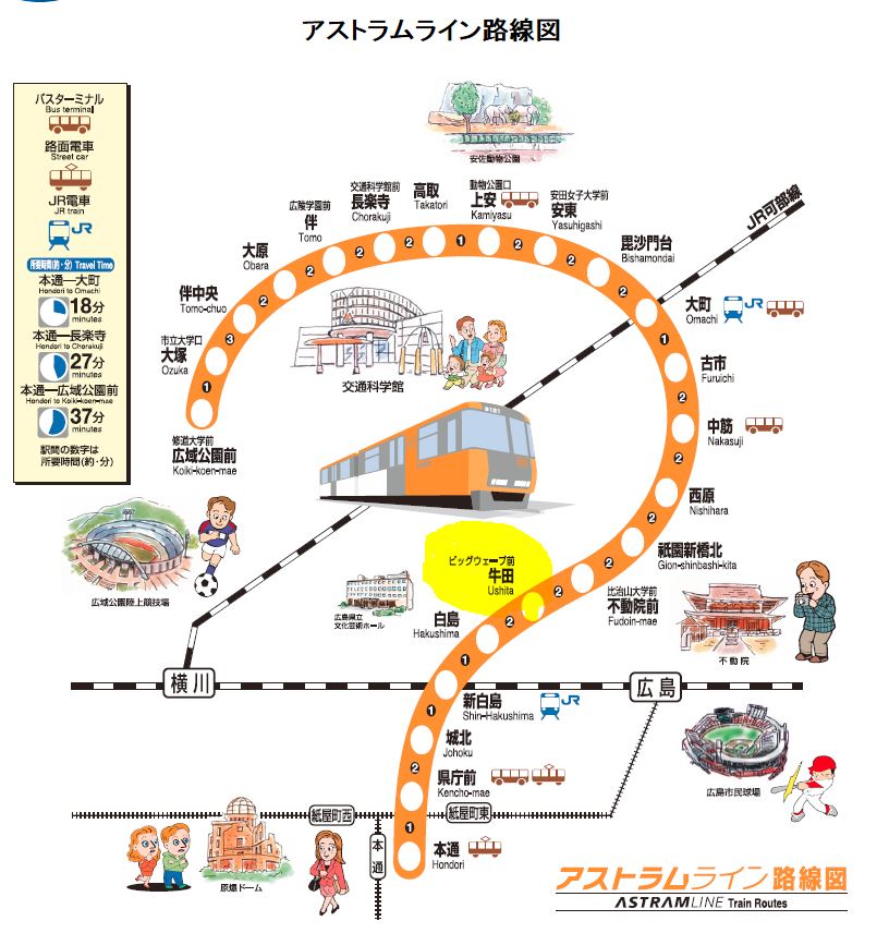 新白島駅(JRとアストラムラインの乗換駅)下車