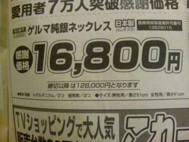 〆切以降は 128,000円 と なります・・・へ~ 今は お買い得なんだ~いそがなきゃ~はっ!今だけ特価、16,800円『原価ぎりぎりの工場直販価格』〆切以降は 128,000円原価 16,800円 以下・・・〆切以降・・粗利有り過ぎ~~~(笑)