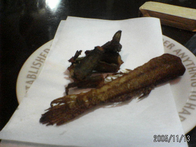 >お母さん料理してくれたんだ。かーさん キャー キャー いいながら、やってくれたよキャー 動いたー キャー 骨がゴリっていうたーってとーさんと にーちゃんは食べなかった。