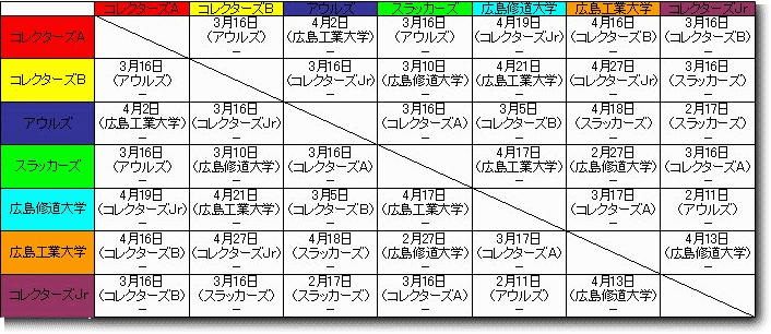 2月11日コレクターズJr 対 広島修道大学が緒戦は変わりません。
