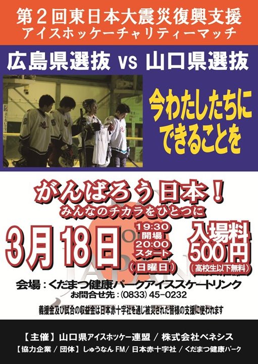 東日本大震災復興支援アイスホッケーチャリティーマッチ@下松健康パークアイススケートリンク