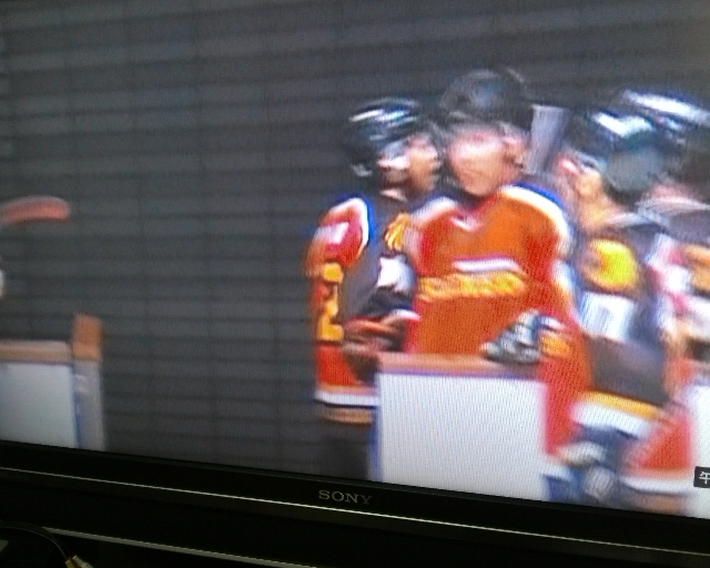 が、ピリオド最初の得点は、スラッカーズ、第3セットFW3人にポイントがつく、うれしいゴール!!