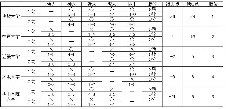 11/04 19:15 滋賀県立 京都産業大学(IA-5) 4-3 佛教大学(IB-1)