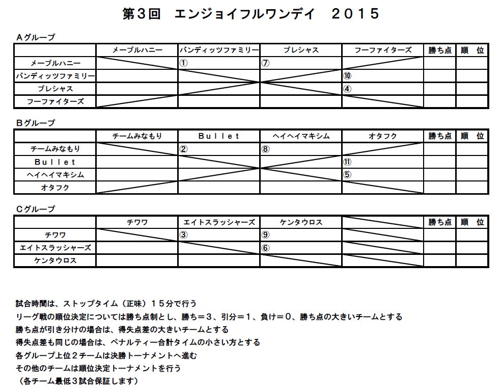 ② 試合時間は、予選リーグ・決勝トーナメントともに、(ストップタイム)15分×1Pとする