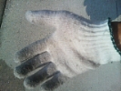 軍手に手を入れて
